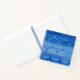 Stylish custom notebook features interlocking ogee shapes ranging from dark blue to light blue and back. In contrast, the continuous S curve outlines shift from light blue to dark blue and back. The painted blue geometric shapes have a pleasing calm look. The paint strokes add variation to the colours and reveal the texture of the watercolor paper they were originally made on.