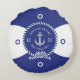 Custom Blue White Anchor Life Ring Nautical Round Pillow