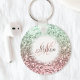 Custom Blush Pink Green Glitter Monogram Name Key Ring
