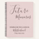 Custom personalised minimalist spiral notebook to document motherhood era and make memories last, like a family keepsake. Simple elegant stylish trendy calligraphy handwritten script. All text is customisable . “Future Memories”are thoughts, feelings, stories, experiences lived by the mother along her mum life journey. This journal will be full of sentimental value over time and read with great pleasure and emotion. Could be a great heartfelt thoughtful gift for a mum to be at a baby shower, or a for a new mummy after giving birt, or for a more experienced mother as well, for Mother’s Day occasion or her birthday celebration. The colour scheme is soft, aesthetic, with pastel blush powder pink paired with the trendy maroon brown matching fonts. A invaluable keepsake at a very affordable price, a gift under 25 dollars for her, in the softcover version.