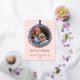 Contemporary classic Christmas holiday season greeting card with blush pink, teal blue and green coloured wreath leaves pattern with real rose gold foil LOVE JOY CHEER wish text. With option and room to customise the text, family name and year date, and add a personal photo of your choice on the front, and a customisable season greeting message on the backside of the card.