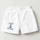 Personalised boat captain name navy anchor boxer shorts. Nautical clothing with navy blue anchor and custom name or monogram initial letters. Maritime Fathers Day or Birthday gift idea for sailor men. Make your own funny underwear for skipper dad, father, grandpa, uncle, son, friend, stepfather, stepdad, grandfather, boss, friend, husband etc. Vintage typography with ship anchor design. Customisable clothes. Underpant with sailing / boating theme. Also nice as present for cruise or sailboat crew members.