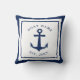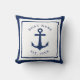 Custom Boat Name Anchor White Navy Blue Nautical Cushion