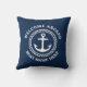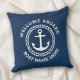 Throw pillow with your custom boat name and anchor with circular rope border and the text "Welcome aboard" or other custom text