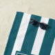 Welcome aboard! Nautical boating beach towel reading your custom boat name surrounded by a compass with an anchor on modern teal and white stripes with seagulls as well as a second line of text ready to be personalised. Perfect for the lake house vacation or a weekend boat trip!