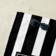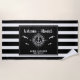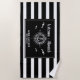 Welcome aboard! Nautical boating beach towel reading your custom boat name surrounded by a compass with an anchor on modern black and white stripes with seagulls as well as a second line of text ready to be personalised. Perfect for the lake house vacation or a weekend boat trip!