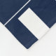 Welcome aboard! Nautical boating fleece blanket reading your custom boat name surrounded by a compass with an anchor on modern navy blue stripes with seagulls as well as a second line of text ready to be personalised.