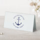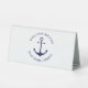 Custom Boat name or Family name, Welcome Aboard, nautical navy blue anchor and text and white Table Tent Sign