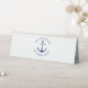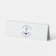 Custom Boat name or Family name, Welcome Aboard, nautical navy blue anchor and text and white Table Tent Sign