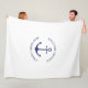 Custom Boat name or Family name, Welcome Aboard, nautical navy blue anchor and text and white Fleece Blanket