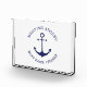 Custom Boat name or Family name, Welcome Aboard, nautical navy blue anchor and text and white wedding sign acrylic block