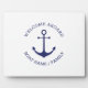 Custom Boat name or Family name, Welcome Aboard, nautical navy blue anchor and text and white wedding plaque