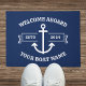 Custom Boat Name Welcome Aboard Navy Blue Anchor Doormat