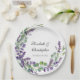 Beautiful lavender and eucalyptus wedding paper plates. Personalise with your details.