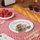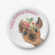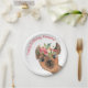 A watercolor illustration of a llama decorates these personalised birthday party plates.