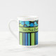 Custom Bone China Mug, Striped Blue Moons Pattern Mug