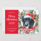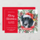 This lovely Border Collie with greenery is sure to bring you holiday cheer! This drawing includes a sweet black and white border collie dog with a Santa hat, surrounded by holiday greenery, berries, and pinecones. You can fully personalise this design by changing the greeting on the banner, and the greeting, names, and pet name on the left side. This is a stylish, yet inexpensive, flat card design can be customised, and it's perfect for border collie lovers, herding dog fans, dog lovers, and pet lovers.