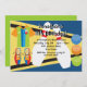 This custom bowling birthday party invitation features several bowling balls in bright colours, bowling pins, a bowling shirt and bowling shoes. Can be customised as a bowling party invitation, a bowling party thank you card and more.