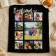 Give your boyfriend a gift they’ll never forget with a personalized photo collage blanket. Featuring 9 of your favorite memories, 'BOYFRIEND' text, and both your names over a classic black background, this modern blanket is perfect for Valentines Day, birthdays, Christmas, or any special day.