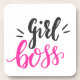 Custom Branded Girl Boss Typography Pink Black Coaster