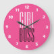 Custom Branded Girl Boss White Black Hot Pink Large Clock