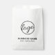Custom black and white business paper bags featuring a minimalist design with your logo along with two lines of text. These simple and professional company branded paper bags are great for making goodie bags or treat bags with promotional items at your next corporate event or trade show.