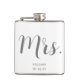 Elegant custom script Mrs bride flask. Personalise this for a special wedding gift for a bride to be or use for your wedding or engagement party.