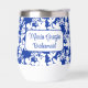 Elegant, chic wedding favour gift for bridesmaid design featuring a beautiful and modern white floral pattern on azure blue. Delicate blue frame and elegant fonts for name and party title customisation. In addition, it is a useful and long lasting favour gift for your wedding party.