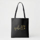 Custom Bridesmaid Gold Script Name Black Tote Bag