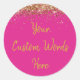 Custom Bright Pink and Gold Birthday Party Favour Classic Round Sticker