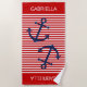 Enjoy total comfort at the beach or sitting poolside, and cool and dry off with this fun, colourful and comfy beach towel. With room to customise or personalise with a name, monogram, initials or (limited) text of your choice. Stand out in the sand with this beautiful contemporary ship anchor on a classic bright red and white stripes pattern background. Modern and stylish design for the sailor or boater, ocean or sea, boating, sailing or water sports lover.