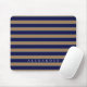Custom Brown Navy Blue Stripes Monogrammed Mouse Pad