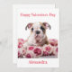 Custom Bulldog Puppy with Pink Roses Valentine Holiday Card