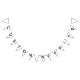 Custom Bunting Banner - Classic Triangle Flags, 16 flags 5.5" x 8" made of sturdy plastic polystyrene, with 6' long thick plastic rope. Each flag fully personalised with just letters etc or with full colour photos or any design. 16 individually customisable flags available in triangle or swallowtail flag shape, single-sided printing.
