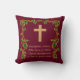 Custom Burgundy and Gold coloured Cross Scripture Pillows or type in your monogram, name(s) or YOUR TEXT or delete it. Beautiful vines flank the gold cross with your text below. You can change the burgundy background colour and gold text to any colour. <b>Call Linda for HELP or Design CHANGES: 239-949-9090</b>