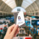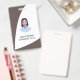 Clean custom employee badge with photo and text in modern curved standard presentation in black, brown and white colours