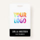 Easily personalise this custom employee name badge with your own company logo and qr code or barcode. Available with different background colours and attachments. No minimum order quantity.