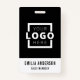 Easily personalise this custom employee name badge with your own company logo and qr code or barcode. Available with different background colours and attachments. No minimum order quantity.