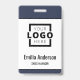 Easily personalise this custom employee name badge with your own company logo and qr code or barcode. Available with different background colours and attachments. No minimum order quantity.