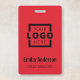 Easily personalise this custom employee name badge with your own company logo and qr code or barcode. Available with different background colours and attachments. No minimum order quantity.