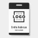 Easily personalise this custom employee name badge with your own company logo and qr code or barcode. Available with different background colours and attachments. No minimum order quantity.