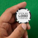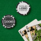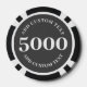 Personalised poker game chips with a custom business logo and your own text. This design in black includes the number 5000 but it can be edited with any value amount.