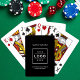 Custom branded playing card set features your logo design centred on the front and framed by custom text that can be personalised with the name of the business, location, slogan, website, or other info. Black background and white text colours can be modified.