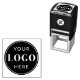 Custom branded self-inking rubber stamper features your professional business logo design. Simply add your company logo to the round placeholder image.