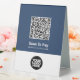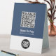 Easily personalize this Custom Business Logo Contactless Qr Code Pay Table Tent with Scan Qr Code and business logo. A simple business design in navy blue and white colors fully customizable in front and back sizes, sans-serif basic and modern fonts and a professional and clear look. Avaiable in paper or plastic, in small, medium or large size. No minimum order.