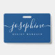 Custom business logo Elegant script name blue ID Badge