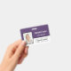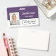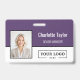This vertical badge design features a clean, modern two-tone layout with a bold top panel of rich deep purple over a crisp white base. The design emphasizes a strong brand presence, clearly featuring the employee's name and role against the dark color. Below, a large, dedicated space on the white panel allows your company logo to stand out prominently for easy recognition.