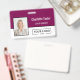 This badge features a bold and eye-catching color block design, dominated by a rich, vibrant magenta or deep berry hue on the top half, perfectly contrasted with a clean white lower section. The layout includes a sharp, framed area for a professional photo and a designated space for your logo, ensuring instant recognition. This high-impact, modern aesthetic gives your team a standout, memorable look that is both professional and fashion-forward.