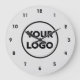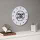 Replace the sample company logo with your own in the sidebar to create a stylish minimal wall clock for your business with a simple light grey background. Your logo can be in colour or black and white. Bold black numbers around the edge make it easy to tell the time. Click to customise further if you need to adjust the size of your logo with the scale buttons. If you want the background colour to show through your logo, upload a version of your logo with a transparent background.