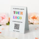 Personalised Table Tent Sign with Your Company Logo with QR Cote Scan Info and Text - Social Media Name Slogan or Custom Text Professional Design Promotional Business Tabletop Signs / Gift - Add Your Logo - Image or Photo and QR Code / Business Slogan - Tagline - Name - Company / Social Media Handle - Website or Email - Phone / More ! Resize and move or remove and add elements - image / text with Customisation tool. Choose / add your favourite background and text colours / font / size! Please see my others projects / designs. You can also transfer this designs to more than 1000 Zazzle products. Please use your logo - image that does not infringe anyone's Copyright !! Good Luck - Be Happy :)
